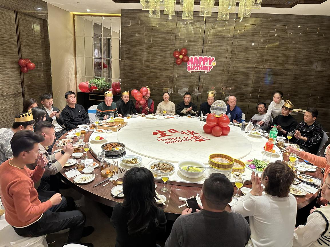 天色將晚,壽星們?cè)谘﹫?chǎng)夕陽(yáng)的送別下,前往立達(dá)深航國(guó)際酒店參加生日慶祝晚宴。生日蛋糕與美酒佳肴都已就緒,“家宴”的主人翁們歡聚此刻,讓我們共同舉杯、互相感恩、互道祝福、互訴衷腸,唱響熟悉的生日旋律,在愉快、溫馨的氛圍中為此次活動(dòng)劃上圓滿的句號(hào)。讓我們一起心系立達(dá),愛(ài)企如家;讓我們共同祝愿各位壽星生日快樂(lè),祝愿我們的華尊立達(dá)集團(tuán)興隆昌盛!